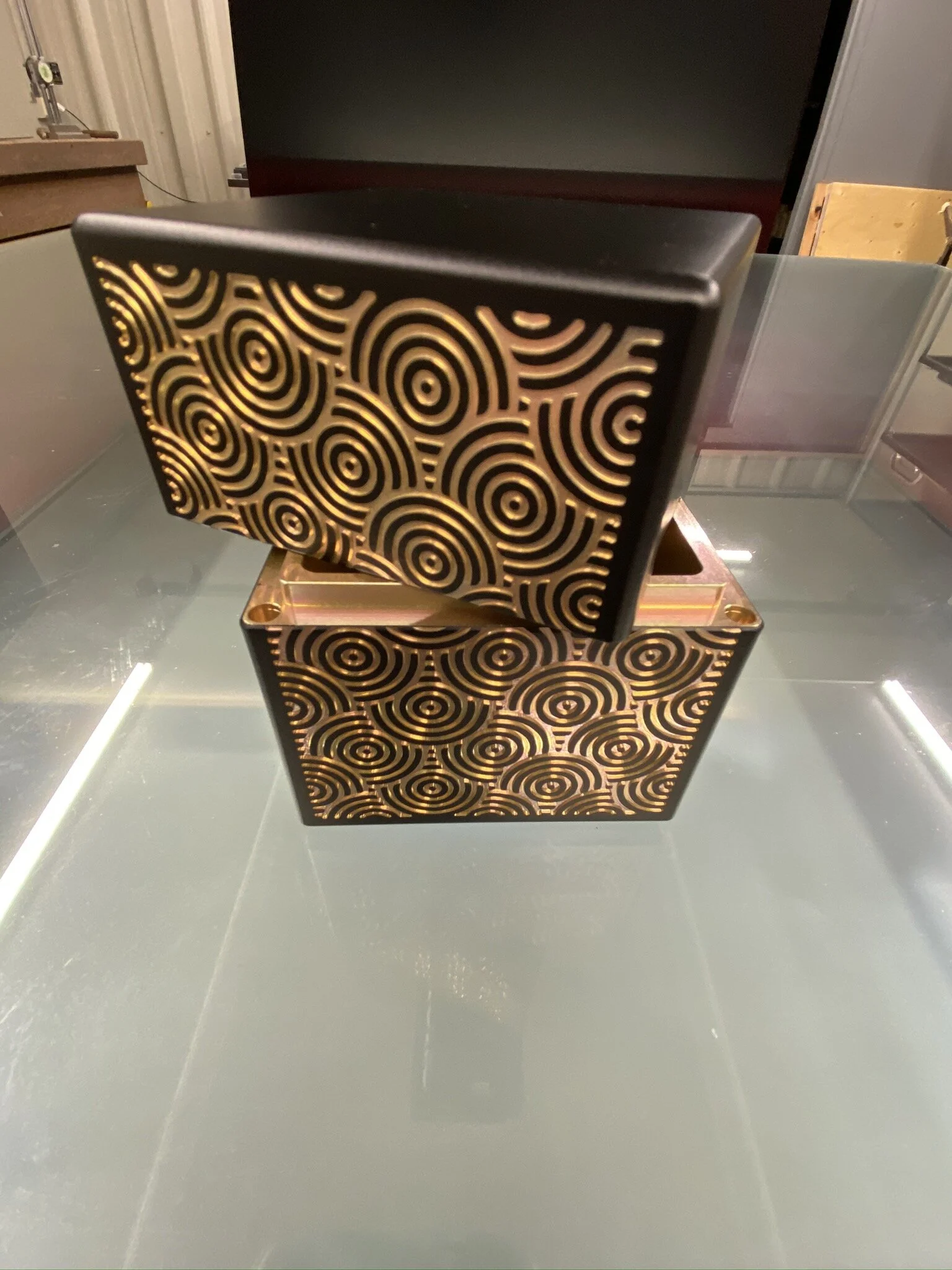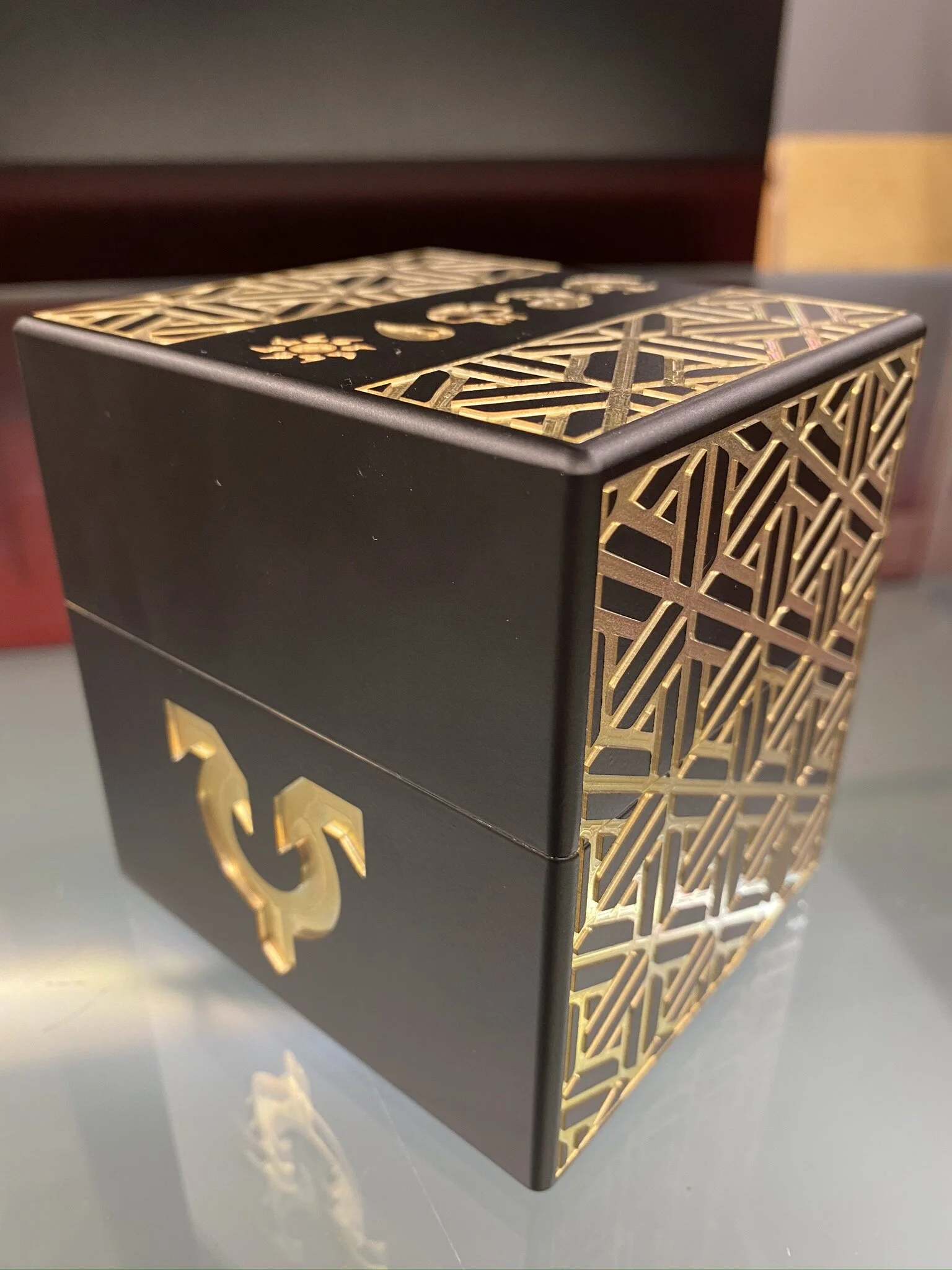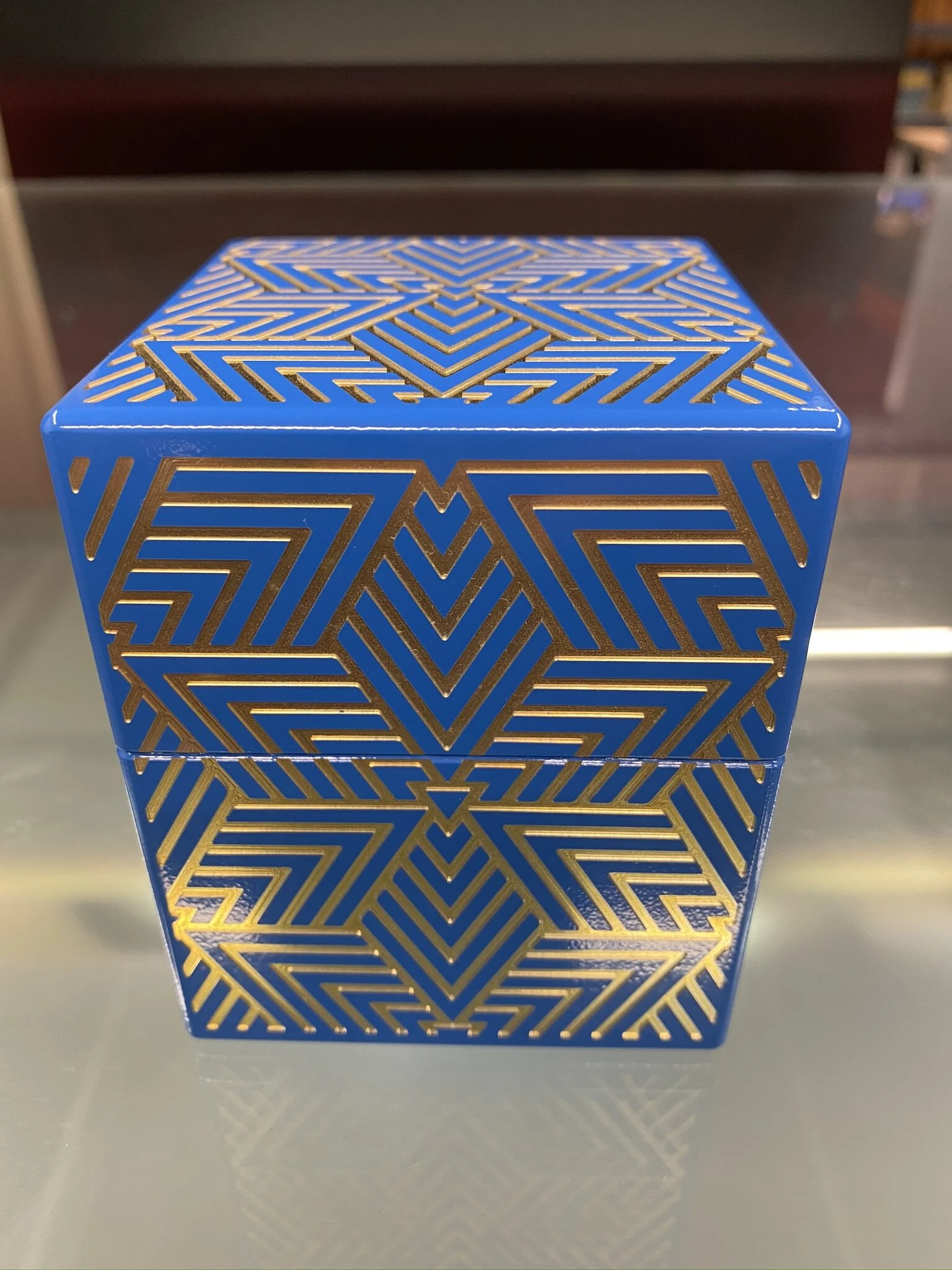 Stained Glass, +85$, Features special patterns on both sides and front of the box.