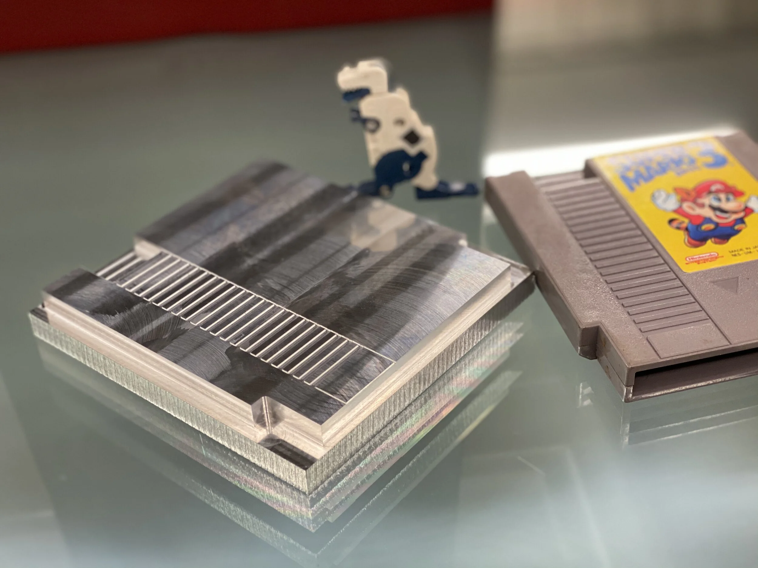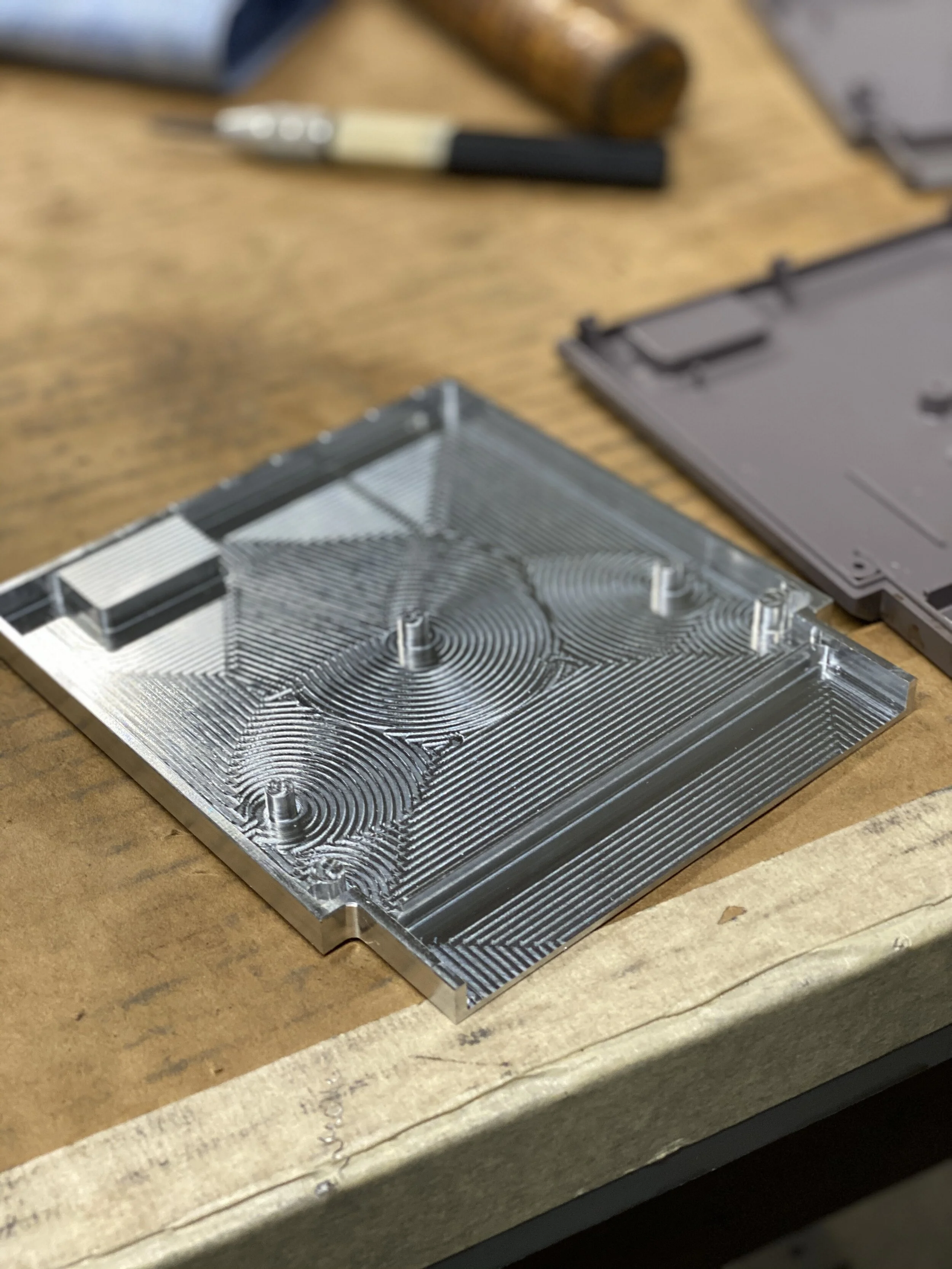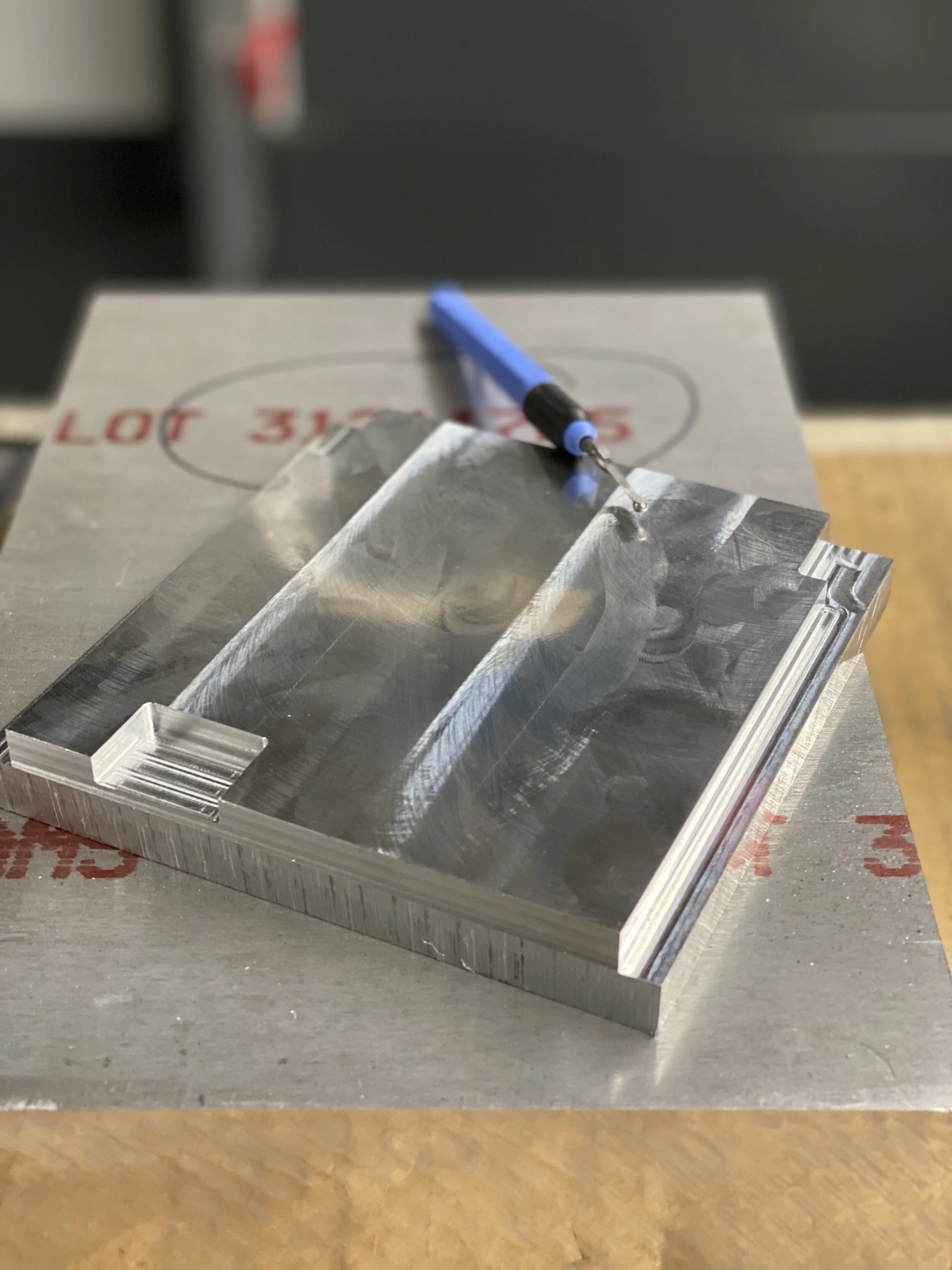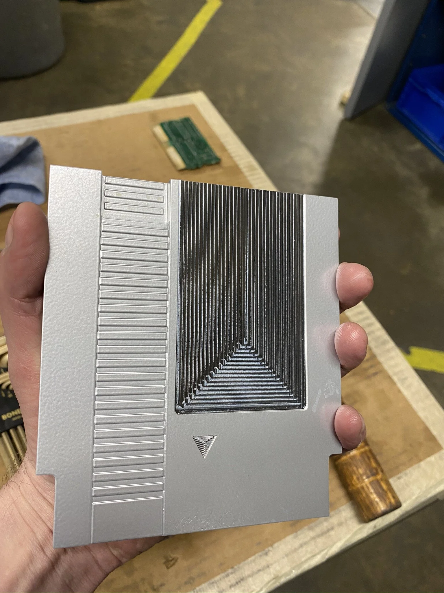 Finished! The details are cut after painting to create edges you can’t get from masking. The logo is laser etched into the aluminum.